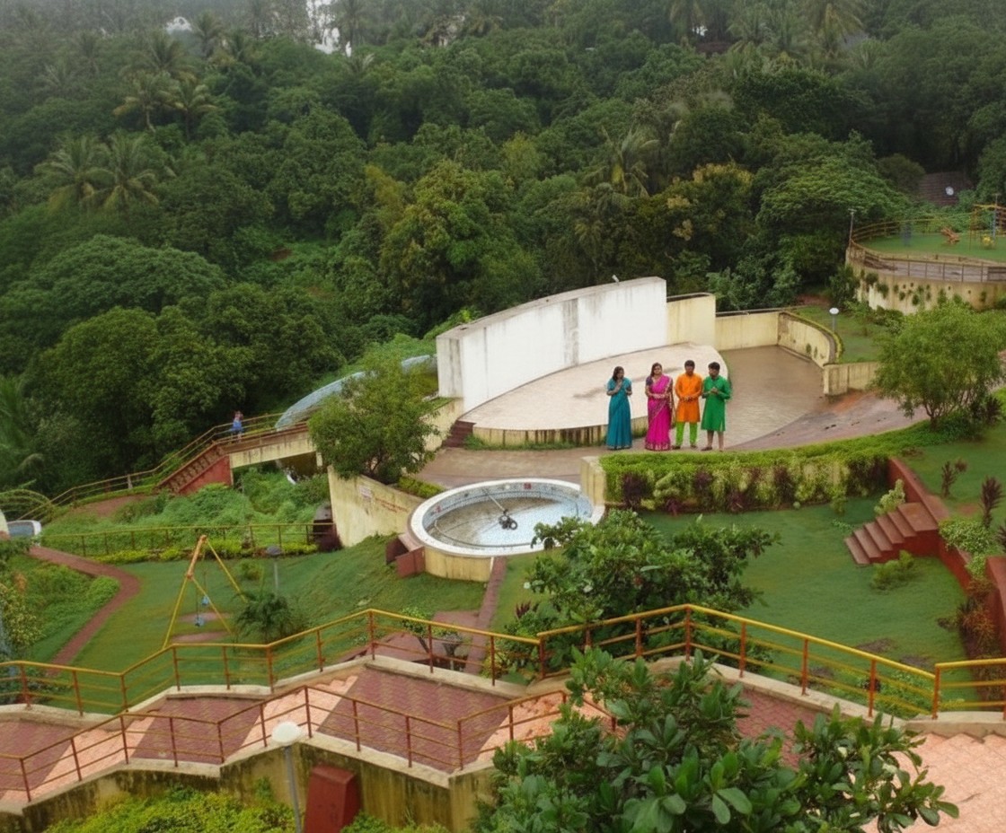 The palace is situated on a hilltop near Ratnagiri coastline and offers beautiful views of the Arabian Sea. The structure reflects a blend of British colonial and Indian architectural styles, with red laterite stone walls, spacious verandas, and sloping roofs.